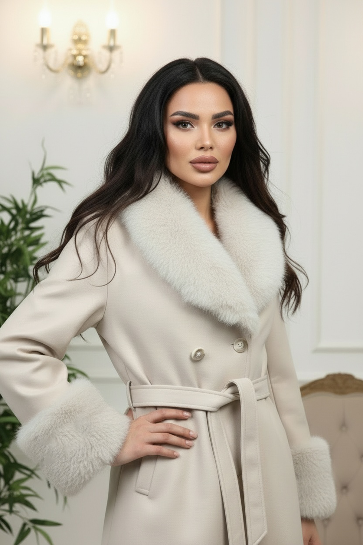 Il Cappotto Morenita è un modello lungo e foderato, dotato di cintura per una vestibilità personalizzabile. La pelliccia interna, realizzata con materiale sintetico, assicura calore e comfort, rispettando al contempo scelte etiche. Perfetto per chi desidera unire stile e praticità durante le giornate fredde.