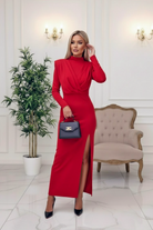 Un abito che conquista per la sua eleganza sofisticata e il taglio impeccabile. Il vestito lungo con spacco è pensato per valorizzare la silhouette con un design sensuale ma raffinato.