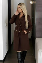 Il cappotto che trasforma ogni uscita in una passerella. La sua linea lunga ed elegante slancia la figura con naturalezza, mentre la cintura in vita definisce le forme con classe e carattere. Il design a doppiopetto con revers importanti richiama il fascino chic delle metropoli, per un look sofisticato senza bisogno di sforzi.