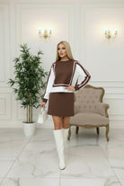 Questo set sofisticato combina una maglia raffinata con una gonna coordinata, perfetto per creare look poliedrici dal giorno alla sera. La qualità dei materiali e l'attenzione ai dettagli garantiscono comfort e stile senza compromessi. Ideale per chi ricerca un capo versatile che si adatta a molteplici occasioni, mantenendo sempre un'impronta di classe e modernità.