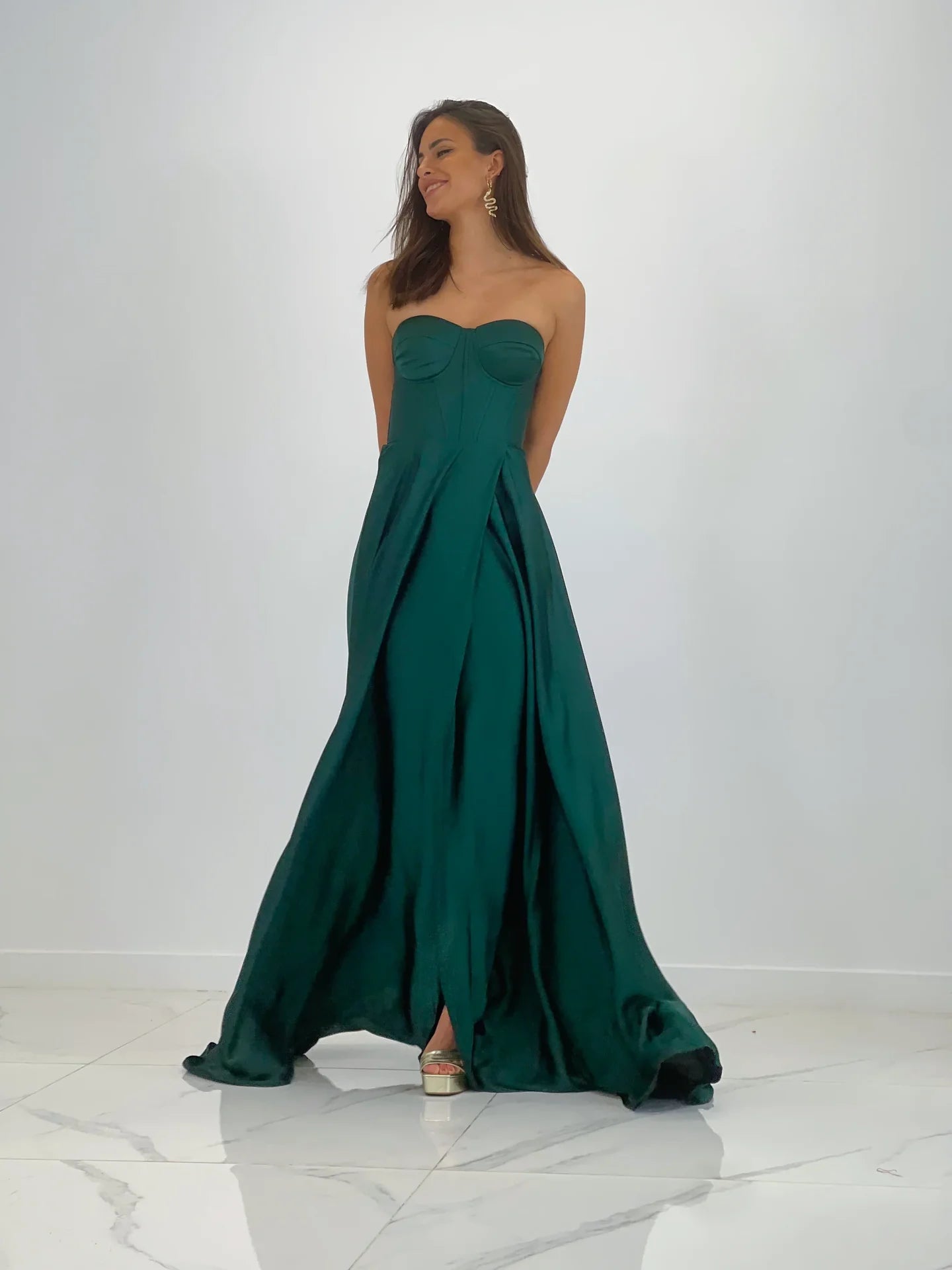 L'elegante Abito Diana ti farà sentire sensuale e sicura di te. Il suo corsetto regolabile garantisce una perfetta vestibilità, mentre la gonna ampia con uno spacco elegante ti faranno risplendere come una dea. Puoi anche indossarlo senza spalline grazie alla fascia interna del corsetto.