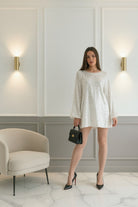 Abito elegante interamente rivestito di paillettes che catturano la luce con ogni movimento. La manica lunga garantisce una copertura raffinata, mentre il fiocco regolabile al retro aggiunge un dettaglio sofisticato e personalizzabile. Perfetto per occasioni speciali, cene eleganti e eventi che richiedono un tocco di glamour. Un capo che trasforma ogni momento in un'occasione indimenticabile.