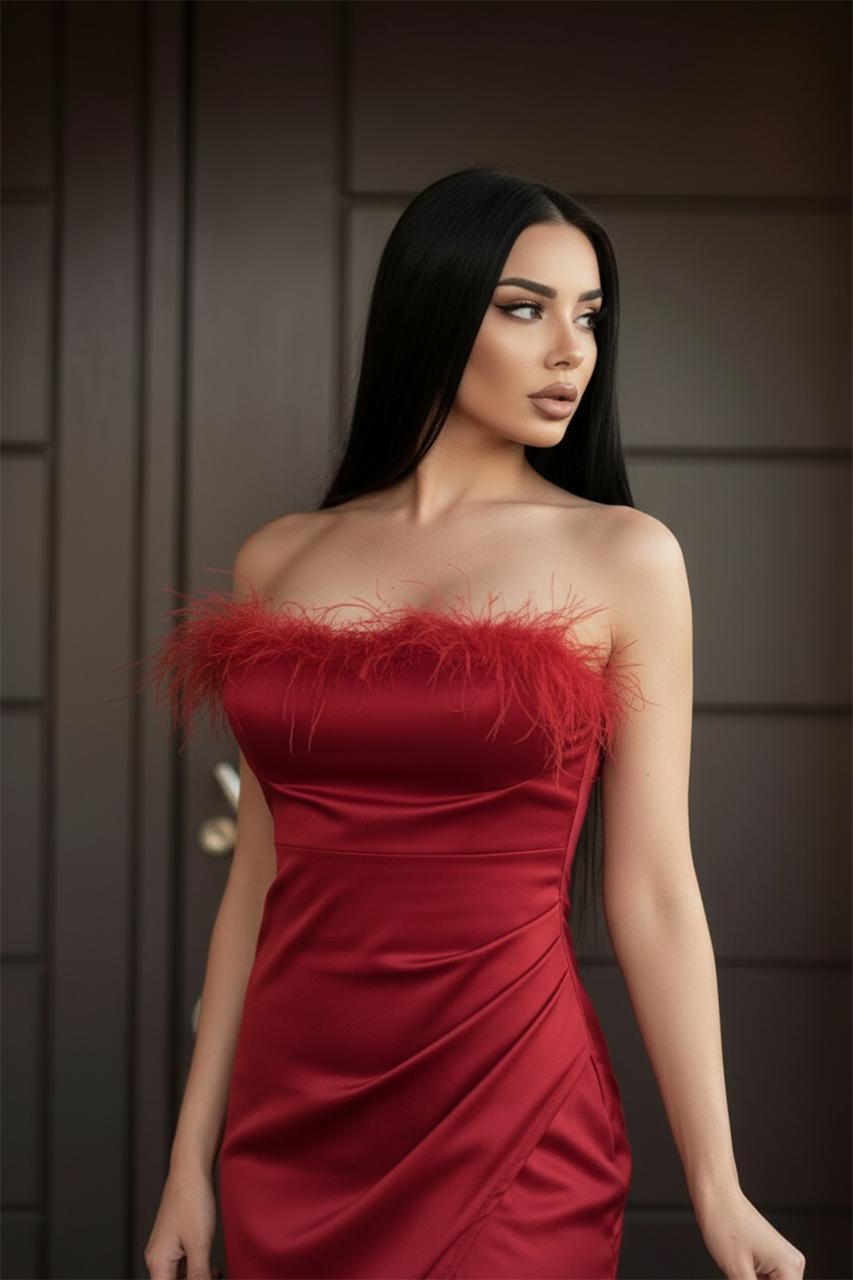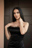 Abito Piuma è un capolavoro di eleganza contemporanea che cattura l'essenza della raffinatezza. Caratterizzato da uno scollo a fascia che valorizza il décolleté con grazia, questo abito presenta dettagli in piuma che aggiungono movimento e leggerezza al design. La silhouette sofisticata lo rende perfetto per occasioni speciali, cene eleganti e eventi esclusivi. Le piume, sapientemente integrate nel capo, creano un effetto visivo straordinario che cattura lo sguardo. Un'opzione ideale per chi desidera distinguersi con stile e personalità, mantenendo un'aura di pura eleganza.