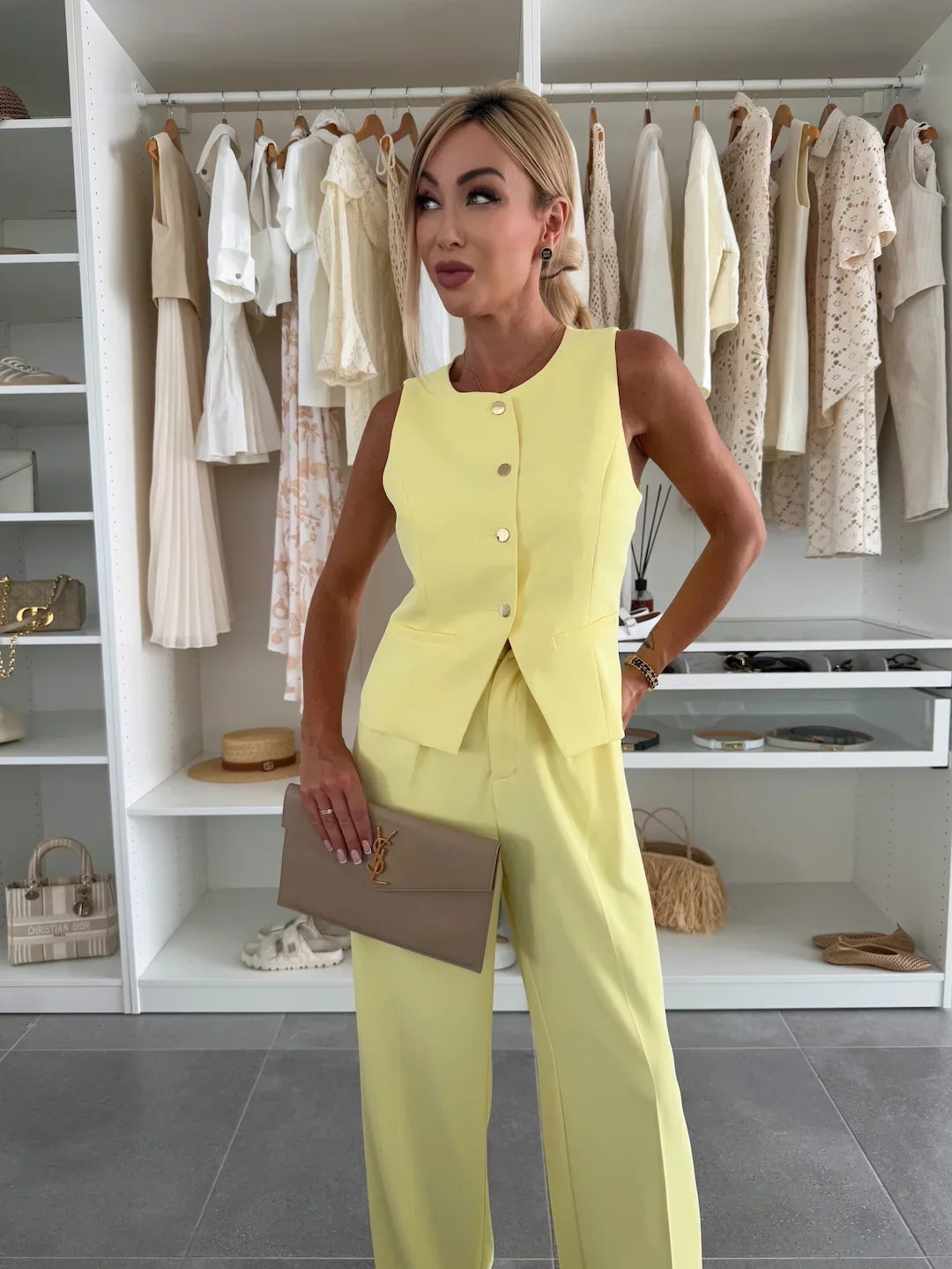 Il Completo Coupé rappresenta l'essenza dell'eleganza italiana con la sua combinazione di pantalone e gilet. La struttura morbida garantisce comfort senza compromettere lo stile, rendendolo versatile per occasioni serali estive o per un look raffinato diurno. Il taglio contemporaneo e i materiali selezionati assicurano una silhouette impeccabile che si adatta perfettamente.