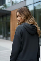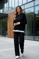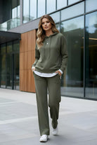 La felpa, con cappuccio, aggiunge un tocco casual e raffinato, mentre i pantaloni ampi offrono una vestibilità comoda e versatile.