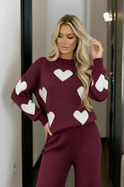 Felpa a girocollo bicolor con stampa in cuore bianco