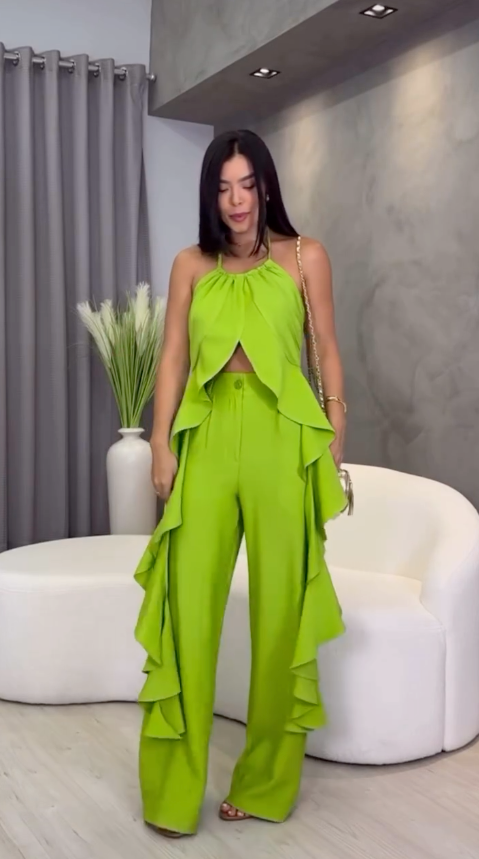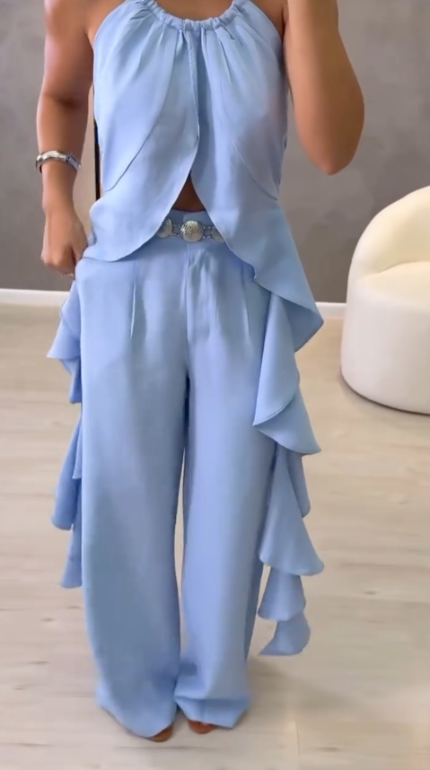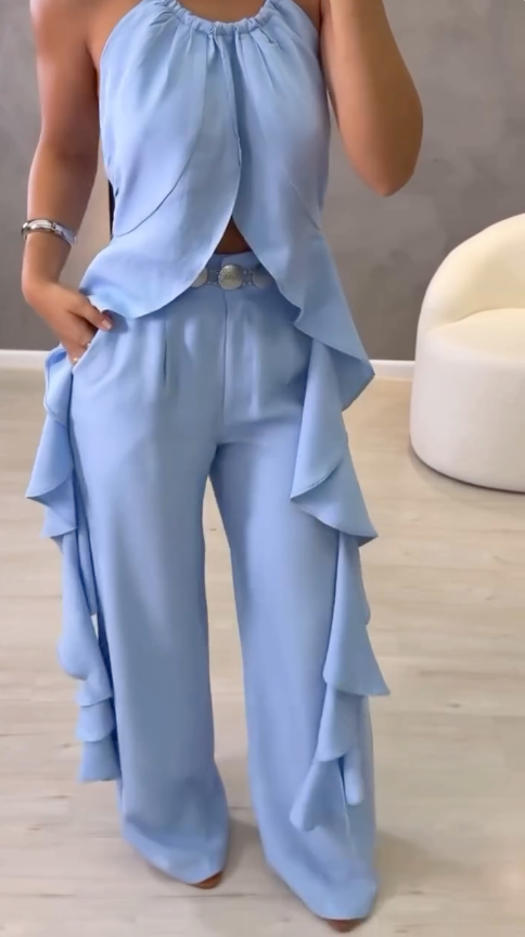 Questo completo Sabrina è composto da un top e un pantalone con zampa larga, disponibile in diversi colori. La silhouette ampia e moderna offre comfort ed eleganza, perfetto per tutti i giorni o occasioni speciali. Scegli tra una varietà di colori per aggiungere un tocco di stile alla tua giornata.