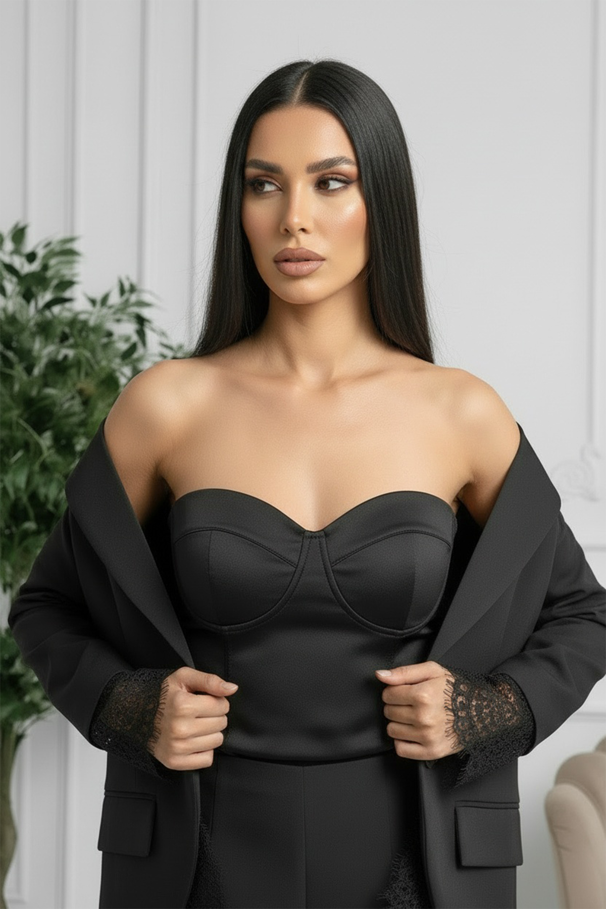 Questo raffinato set da tre pezzi ti offre versatilità e stile per ogni occasione. Scegli tra due varianti di body per personalizzare il tuo look, abbinati a una giacca classica dal taglio impeccabile e a un pantalone che valorizza la silhouette. Perfetto per chi ricerca qualità e sofisticatezza nel proprio guardaroba, il Completo Solmera unisce praticità e distinzione in un'unica soluzione coordinata.