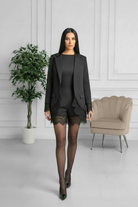 - Completo tre pezzi: body, giacca con pantaloncino e calze INCLUSE
