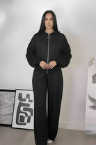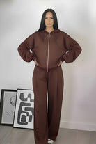La felpa con cappuccio e zip, aggiunge un tocco casual e raffinato, mentre i pantaloni ampi offrono una vestibilità comoda e versatile.