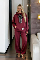 Il pantalone a gamba larga, con coulisse in vita, garantisce comfort e libertà di movimento senza rinunciare alla femminilità.