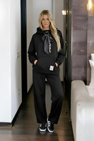 La felpa oversize con cappuccio è impreziosita da un foulard stampato sul collo, che dona un tocco sofisticato e originale.