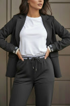 Questo completo sofisticato combina una giacca e un pantalone coordinato, perfetto per chi desidera un look poliedrico e raffinato. Ideale per occasioni professionali e momenti speciali, il completo si adatta con facilità a diversi contesti, garantendo sempre un'immagine curata.