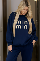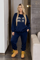 Il top presenta una felpa con dettagli gioiello frontali, che aggiunge un tocco luminoso e femminile, mentre i pantaloni hanno un fit rilassato con elastico in vita per adattarsi perfettamente a ogni silhouette.
