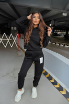 La felpa crop con cappuccio aggiunge un tocco dinamico e femminile, mentre i pantaloni con vita elasticizzata assicurano comfort totale e una vestibilità impeccabile. Il dettaglio patch laterale regala un mood urban contemporaneo, perfetto per creare outfit social-approved.