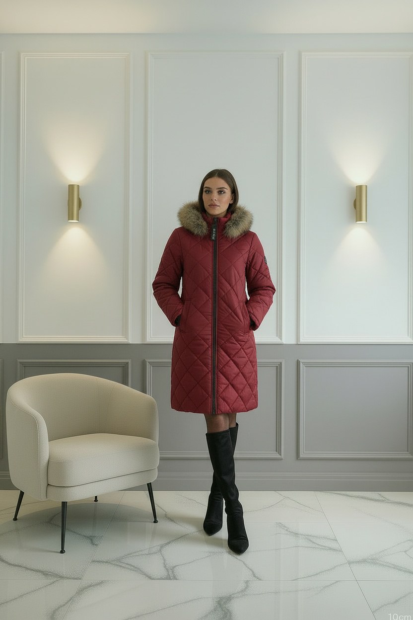 Questo giubbotto unisce eleganza e funzionalità, diventando il compagno ideale per l’inverno. Il suo design trapuntato valorizza la figura, mentre il colore rosso intenso dona carattere e raffinatezza a ogni look. Il cappuccio con morbida pelliccia aggiunge un tocco di lusso e offre una protezione extra dal freddo.