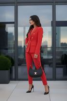 Il pantalone a sigaretta, perfettamente aderente, vanta un elastico al girovita per il massimo comfort. La cintura coordinata in omaggio completa un ensemble che unisce sensualità e modernità, ideale per chi desidera un look impeccabile e consapevole del proprio stile.