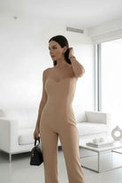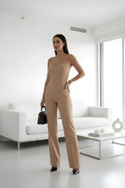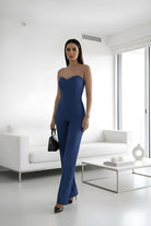 Tutone Gemma: eleganza senza compromessi. Questo capo affascinante unisce uno scollo netto a fascia che esalta le spalle con un pantalone a palazzo fluido e raffinato. La silhouette sensuale e moderna crea un effetto allungante, perfetto per chi desidera un look sofisticato e contemporaneo. Ideale per occasioni speciali o per elevare il tuo stile quotidiano con un tocco di classe.
