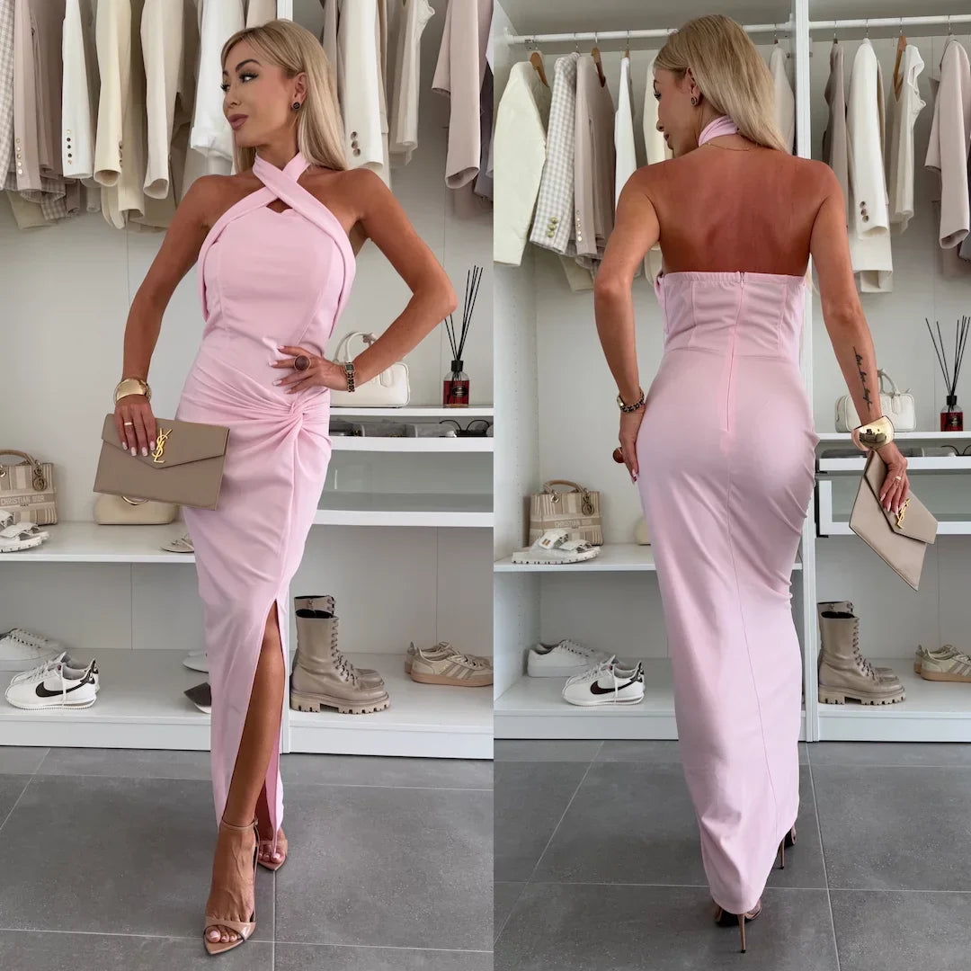 Raffinato ed estremamente femminile, l’abito Julissa è la scelta perfetta per cerimonie, eventi o serate speciali. Realizzato in un delicato rosa cipria, questo modello lungo valorizza la silhouette grazie al taglio aderente e alla scollatura incrociata sul décolleté, che dona un tocco glamour e sofisticato.