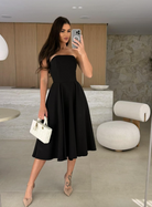 Vestito Simplicity And Charm: eleganza senza compromessi. Questo abito classico affascina con uno scollo a fascia che incornicia delicatamente il décolleté, creando una silhouette raffinata e femminile. La linea essenziale esalta la figura con sobria sofisticazione, perfetto per occasioni speciali o per chi ricerca un capo versatile dal fascino intramontabile. Un'armatura di stile che trasmette sicurezza e grazia.
