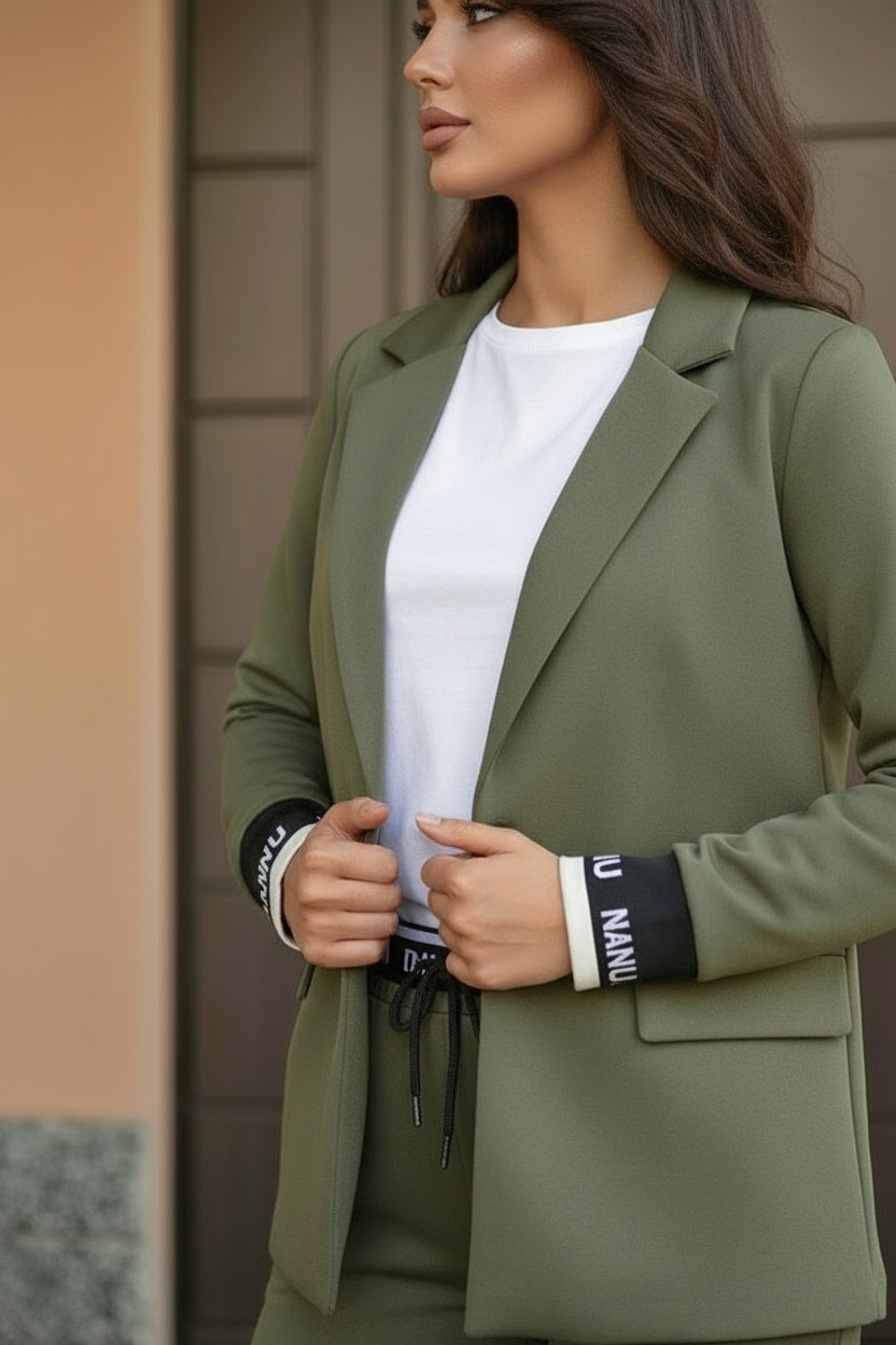 - Giacca con chiusura in bottone e polsini