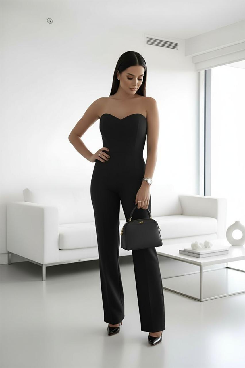Tutone Gemma: eleganza senza compromessi. Questo capo affascinante unisce uno scollo netto a fascia che esalta le spalle con un pantalone a palazzo fluido e raffinato. La silhouette sensuale e moderna crea un effetto allungante, perfetto per chi desidera un look sofisticato e contemporaneo. Ideale per occasioni speciali o per elevare il tuo stile quotidiano con un tocco di classe.
